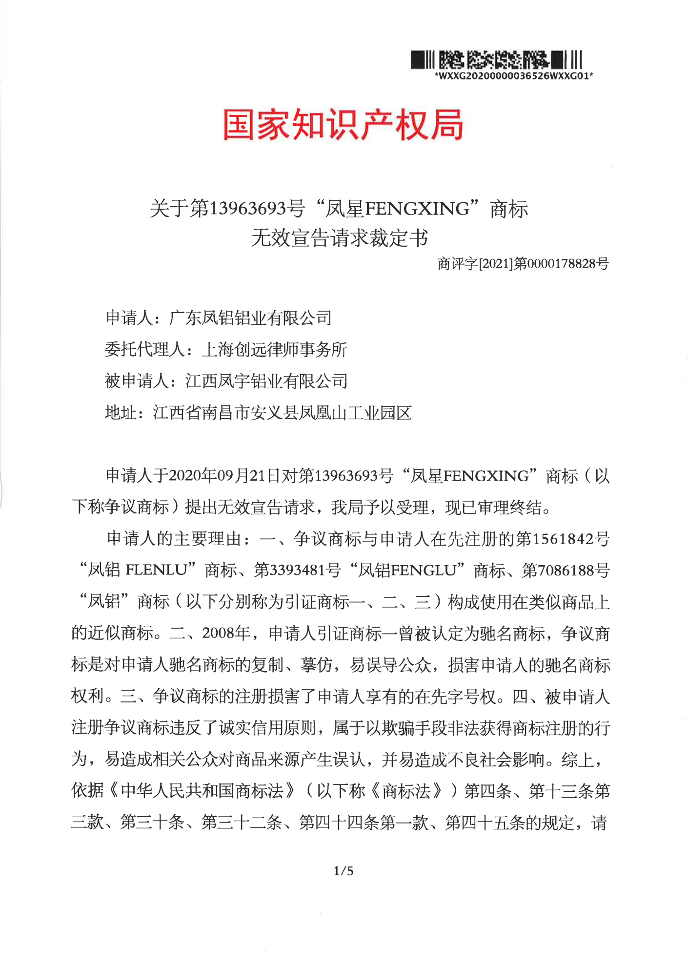 九江辉知队 | 国家知识产权局:“凤星”商标无效