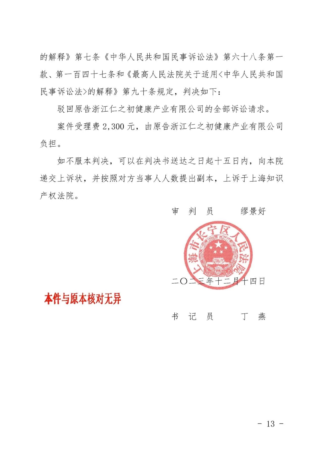 九江辉知胜诉佳讯 | “仁之初健康”著作权及不正当竞争纠纷案,法院:驳回全部诉讼请求!